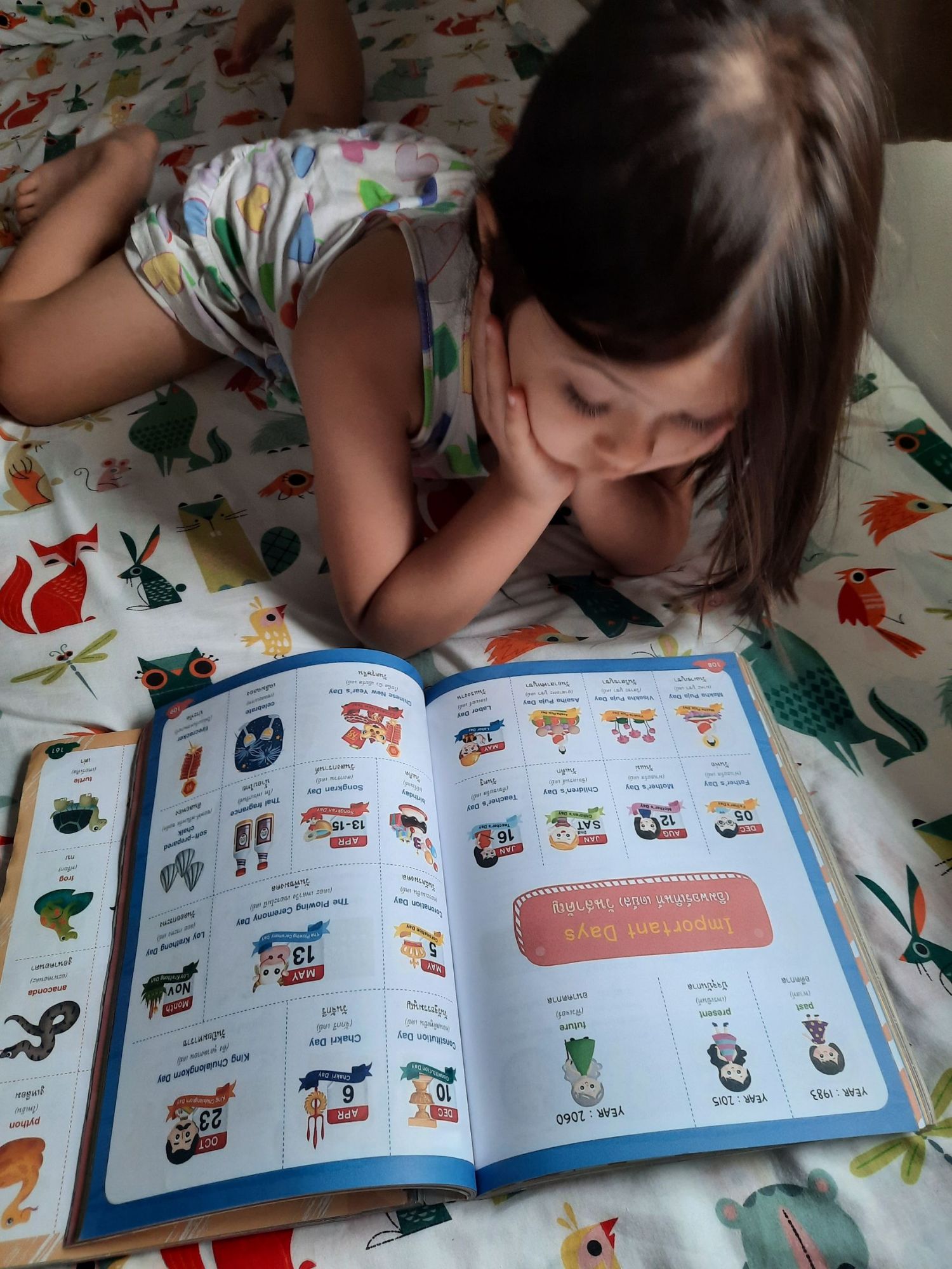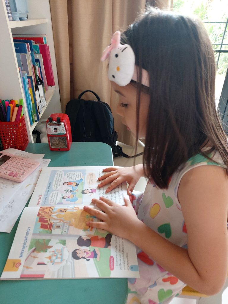 ตื่นเช้าอ่านและเรียนรู้คำศัพท์ภาษาไทยและอังกฤษเรื่อง วันสำคัญ (Important Days) และอาชีพ (Occupation) หลังรับประทานอาหารเช้า เรียนพระพุทธศาสนา อ่านจากตำราเรียน ป.1 และทำกิจกรรมการเรียนรู้ เรื่องพุทธประวัติ วันประสูติ ตรัสรู้ ปรินิพพาน คุณแม่อธิบายเพิ่มเติม