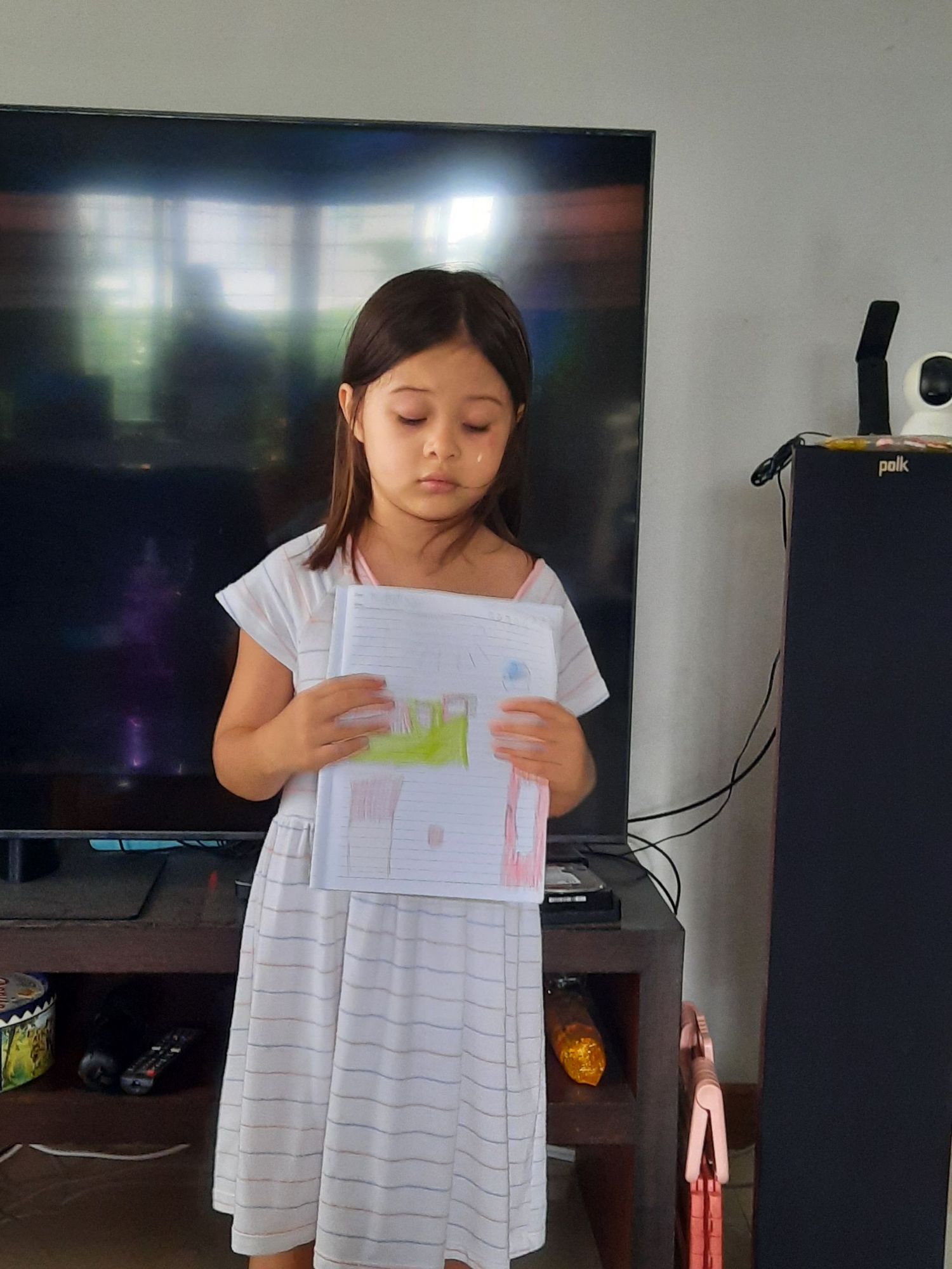 Visual Arts ทัศนศิลป์. Studied about observing your surroundings. Natural objects and man made objects and their attributes. Had Freyja do a presentation of a drawing she made of things in her surroundings.