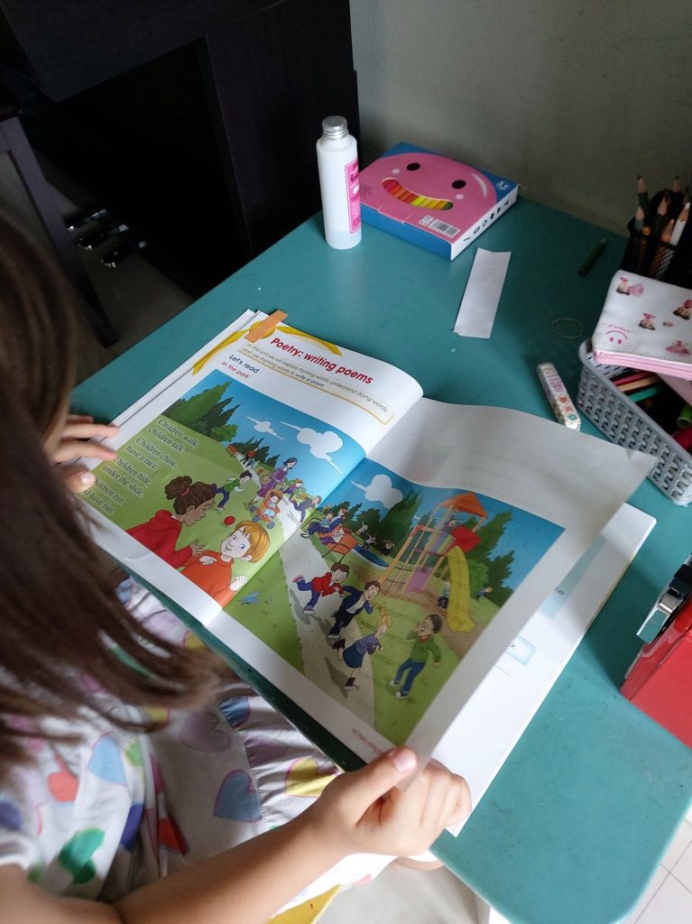 - ภาษาอังกฤษ : เรียนจากหนังสือ Cambridge grammar and writing skills เรื่อง บทกวี: การเขียนกวี ซึ่งเกี่ยวกับคำคล้องจอง การเข้าใจคำกริยา และการใช้คำคล้องจองในการแต่งกลอน