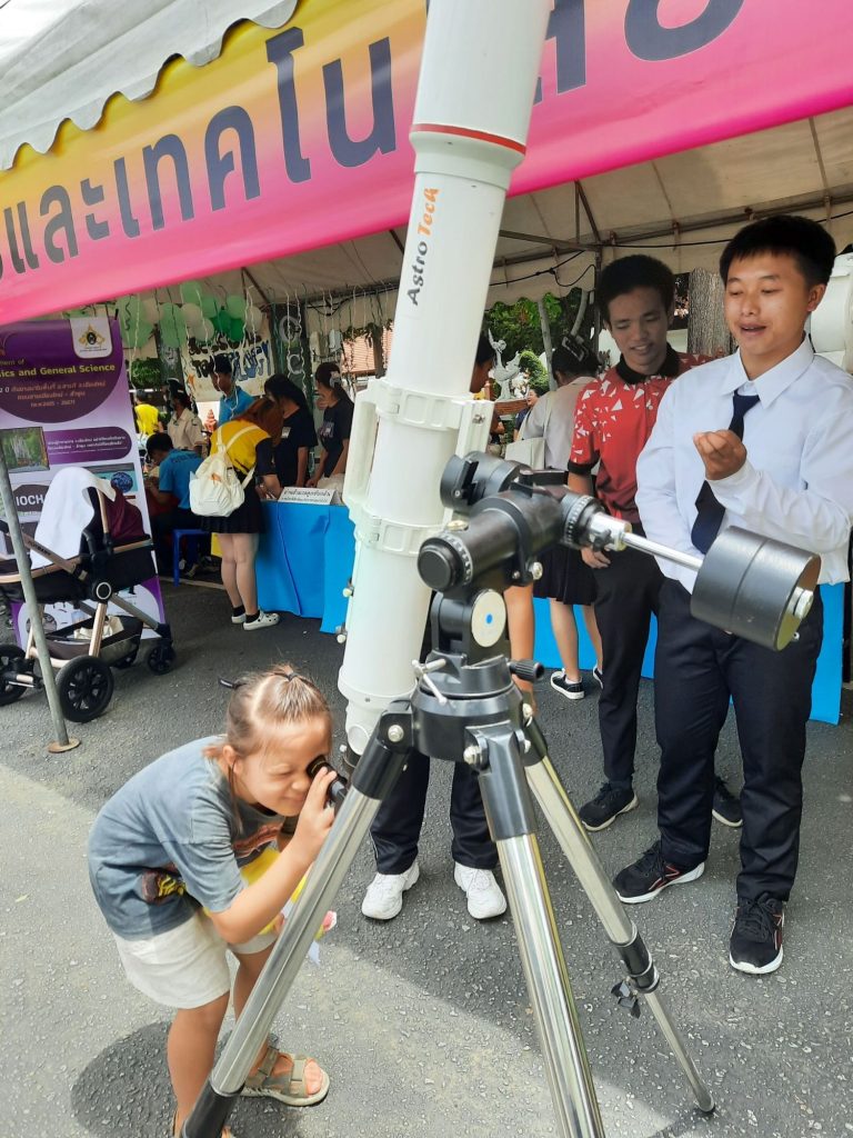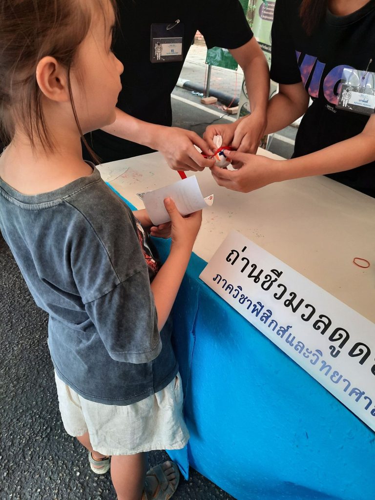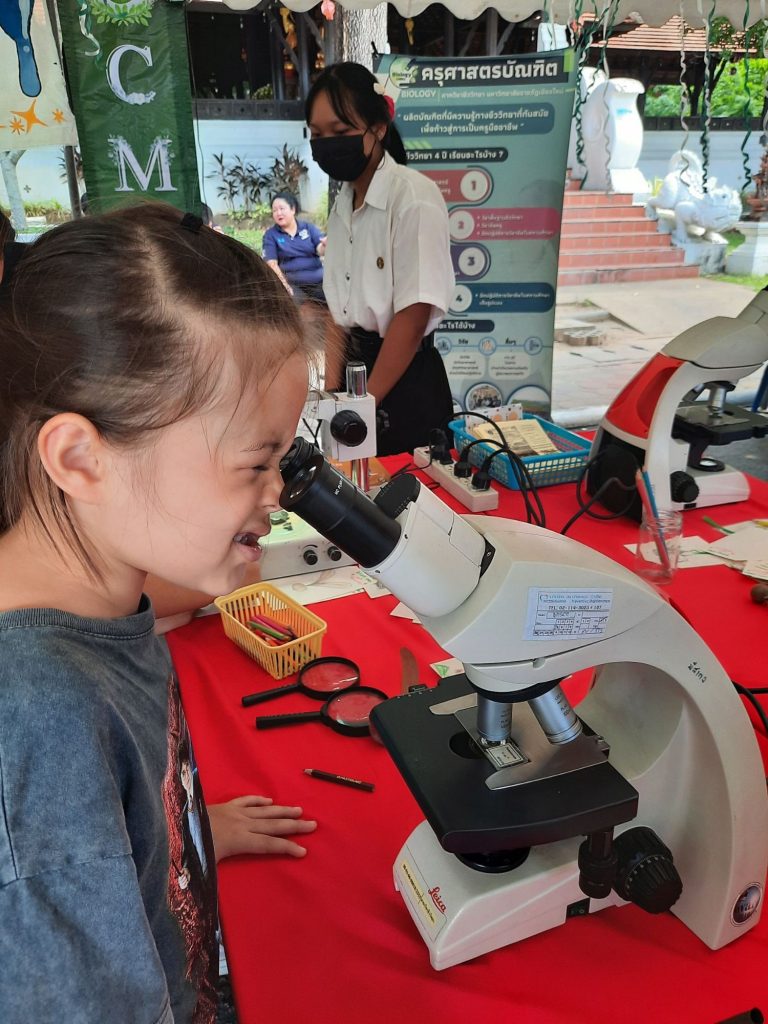 - คณะวิทยาศาสตร์ : ร่วมสังเกตการผสมน้ำหอมและการทำพิเสนน้ำ เรียนรู้ชีววิทยาของสัตว์โดยใช้แว่นขยายแล้ววาดรูป ส่องเซลล์และฟอสซิลโดยใช้กล้องจุลทรรศน์ และการสังเกตดวงอาทิตย์ในเวลากลางวันโดยใช้กล้องโทรทรรศน์ และเรียนรู้คุณสมบัติของถ่านชีวมวลดูดกลิ่น พร้อมทั้งวาดรูประบายสีผ้าเพื่อห่อถ่าน