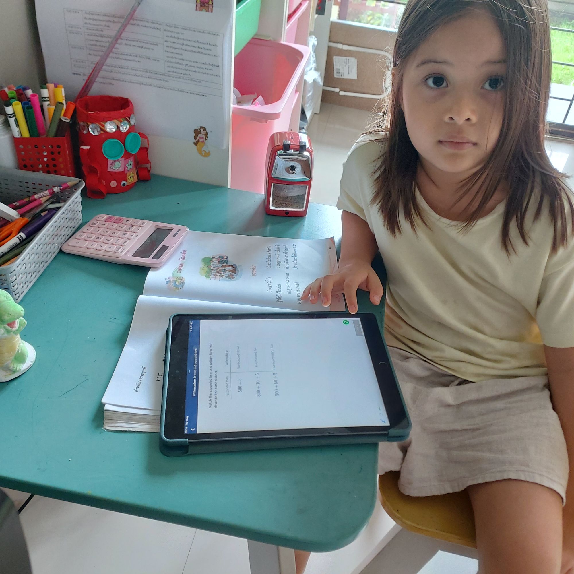 เรียนเรื่องการบวกเลข 2 หลักและทำแบบทดสอบท้ายบท และค่าประจำหลักผ่านแอปพลิเคชั่น Khan Academy.