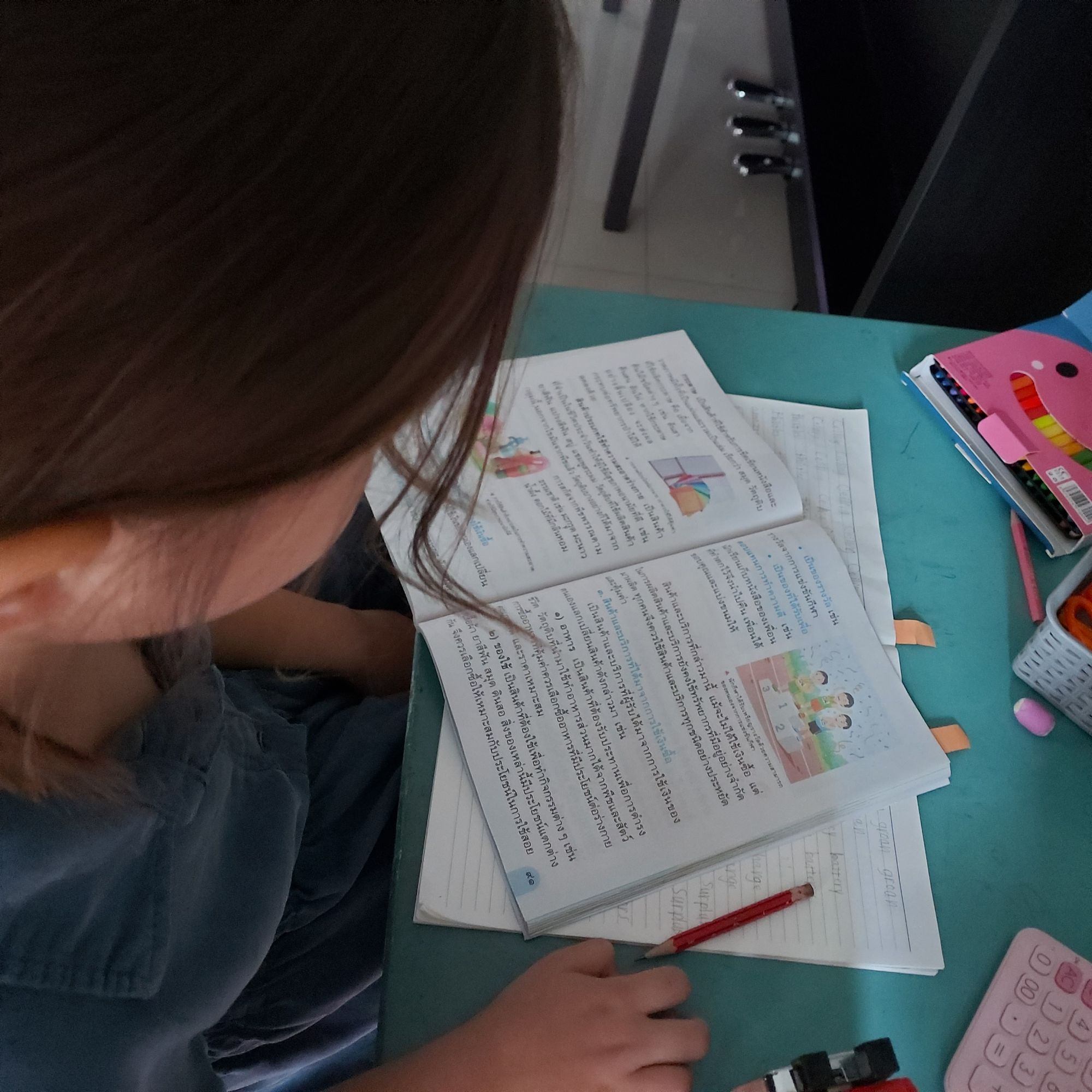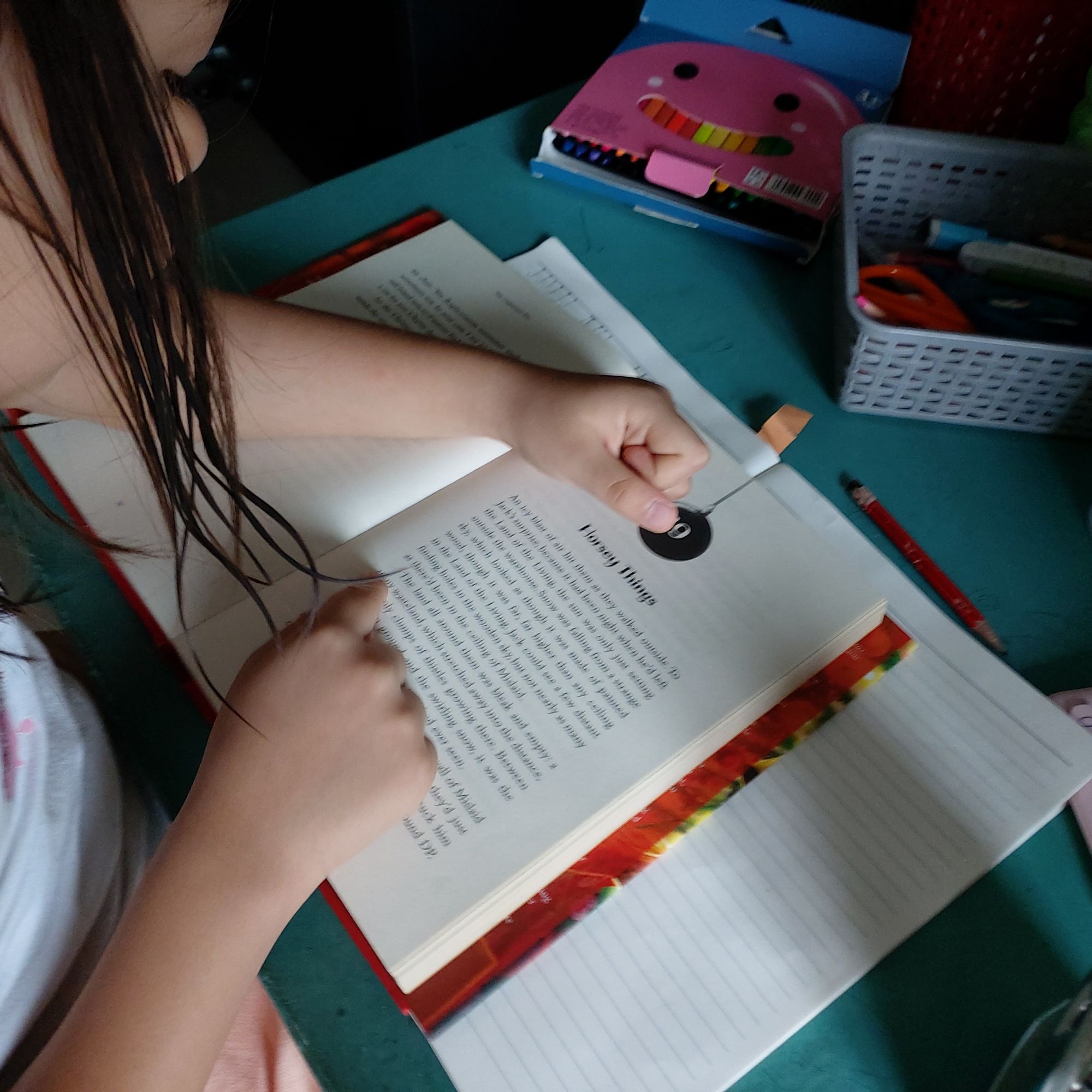 English: Read a chapter of the Christmas Pig and there after did a dictation of 18 chosen words from same chapter.