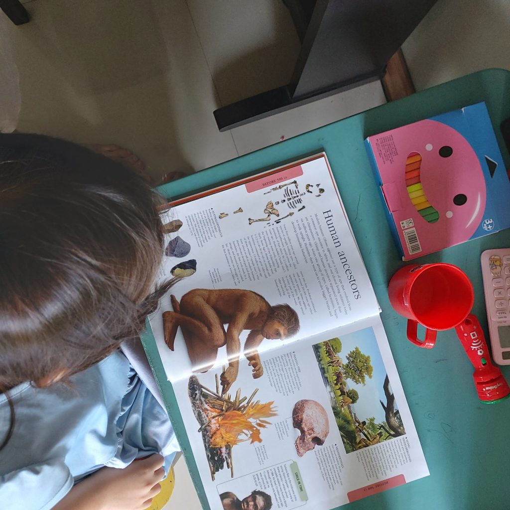 ประวัติศาสตร์ : ฝึกอ่านภาษาอังกฤษ จากหนังสือสารานุกรมสำหรับเด็ก History ในหัวข้อ Before 500 CE และหัวข้อ Human Ancestors เรื่องเกี่ยวมนุษย์ในสมัยโบราณ แล้วคุณพ่ออธิบายเพิ่มเติม