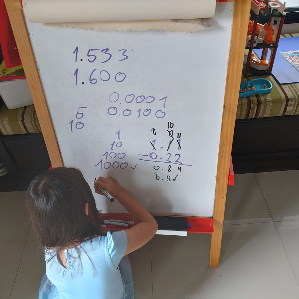 คณิตศาสตร์: คุณพ่อทบทวนเรื่องค่าประจำตำแหน่งและอธิบายเพิ่มเติมไปถึงค่าประจำตำแหน่งของจุดทศนิยม