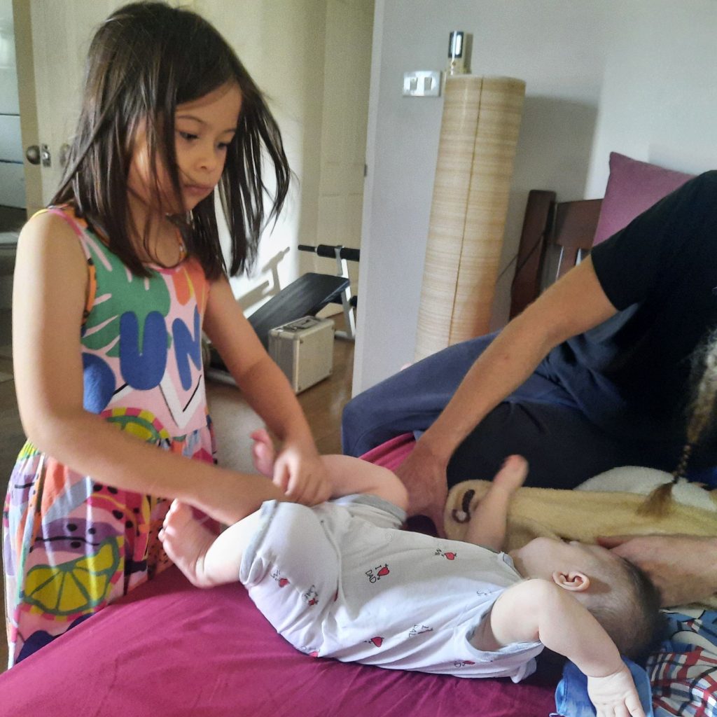 ช่วยคุณแม่ใส่ผ้าอ้อม และเสื้อผ้าให้น้อง