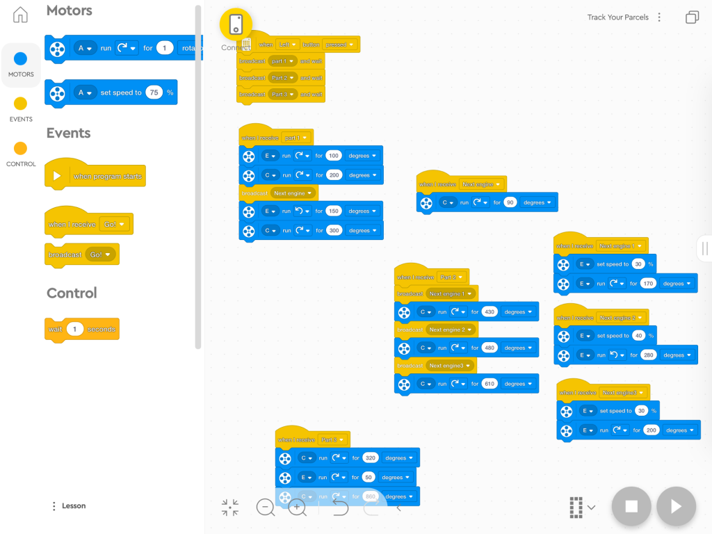 Continued with the Spike Prime project Track Your Parcels. Made a map and programmed in Scratch to follow said map with the tracker.