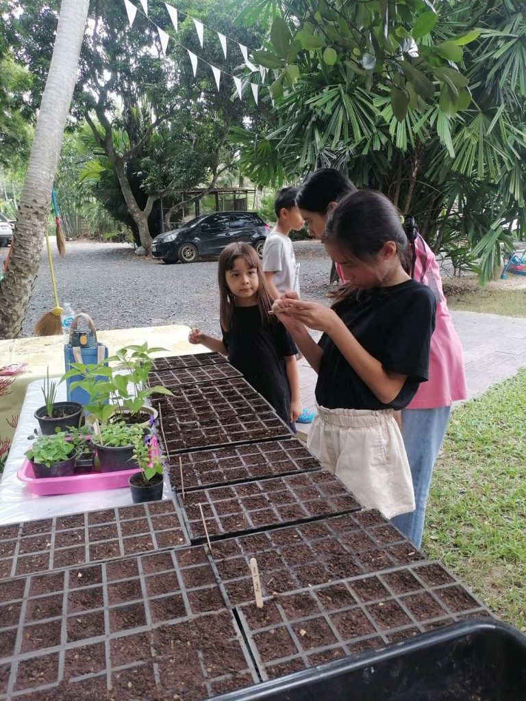 ช่วงบ่ายร่วม Workshop  เน้นให้เด็กๆ ลงมือทำ และเรียนรู้ เรื่องเมล็ด จากของจริง สอนการเพาะเมล็ดแบบง่ายๆ  ชวนปลูกต้นหอม แบบ ประหยัดเวลา