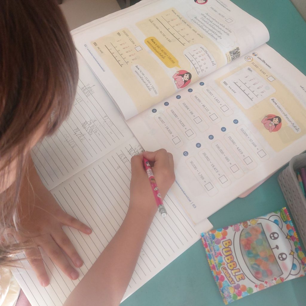เรียนคณิตศาสตร์ และทำแบบฝึกหัด