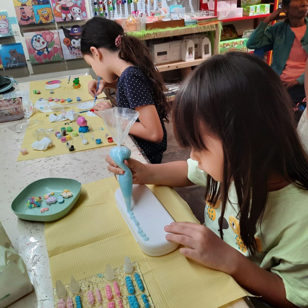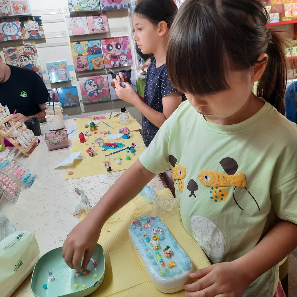ไปร่วมทำกิจกรรมกับโนเอมและเพื่อนๆเนื่องในวันเกิดของโนเอมที่ร้าน Fun cream ตกแต่งกล่องดินสอโดยใช้ครีมกาวและลูกปัดต่างๆ ฝึกการใช้กล้ามเนื้อมือและการประสานงานระหว่างมือกับตาในการทากาวและวางลูกปัด นอกจากนี้ยังช่วยเสริมทักษะการคิดสร้างสรรค์ในการออกแบบลวดลายและการเลือกสี การทำงานนี้ยังพัฒนาความละเอียดรอบคอบและการแก้ปัญหาหากมีอุปสรรคในการตกแต่งกล่องดินสอ